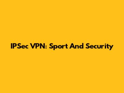 IPSec VPN: Sport And Security