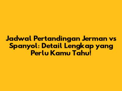 Hey guys, siap-siap buat nonton salah satu laga paling seru di dunia sepak bola! Kita bakal bedah habis-habisan tentang jadwal pertandingan Jerman vs Spanyol, mulai dari kapan pertandingannya, di mana kamu bisa nonton, sampai info-info penting lainnya. Jadi, jangan sampai ketinggalan, ya!