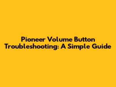 Pioneer Volume Button Troubleshooting: A Simple Guide