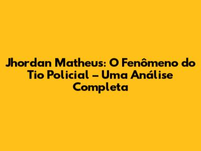 Conclusão: O Legado do Tio Policial e o Futuro de Jhordan Matheus