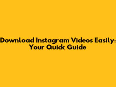 Download Instagram Videos Easily: Your Quick Guide
