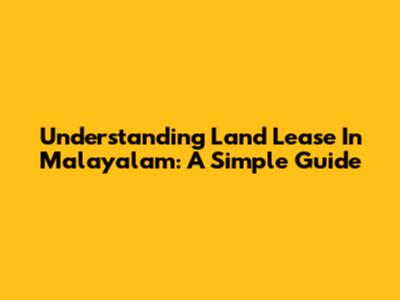 Understanding Land Lease In Malayalam: A Simple Guide