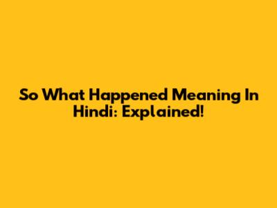 So What Happened Meaning In Hindi: Explained!