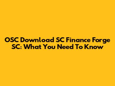 OSC Download SC Finance Forge SC: What You Need To Know
