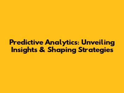 Predictive Analytics: Unveiling Insights & Shaping Strategies