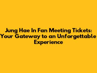 Hey everyone! Get ready to mark your calendars because Jung Hae In fan meeting tickets are what you need if you're a fan of this charismatic South Korean actor. Known for his charming roles in dramas like "Something in the Rain" and "D.P.", Jung Hae In has captured the hearts of many worldwide. A fan meeting isn't just a typical event; it's a chance to connect with your favorite star on a more personal level, witness his genuine personality, and perhaps even share a laugh or two. Imagine being in the same room, hearing him speak directly to you, and maybe even getting a chance to ask a question! These events are meticulously planned to give fans a special memory, often including interactive segments, performances, and heartfelt conversations. So, if you're looking to make a memory that lasts, securing your spot at a Jung Hae In fan meeting is the first step. Don't miss out on this incredible opportunity to get closer to the star you admire.