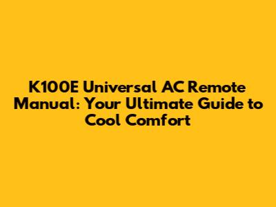 Hey guys, let's dive into the K100E Universal AC Remote Manual! If you've ever felt like your AC remote is a mystery, or maybe you've lost the original and now you're stuck, you're in the right place. This guide is your ultimate friend to understanding and mastering your K100E universal air conditioner remote. We'll cover everything from the basic functions to advanced settings, making sure you can get the most out of your air conditioning system. So, buckle up! Let's transform you from an AC remote newbie to a total pro. We'll explore the ins and outs, troubleshooting tips, and even some cool hacks. Whether you're trying to escape the summer heat or just want to boost your AC game, this manual is your go-to resource. This guide is all about giving you the power to control your climate. The K100E remote is designed to work with a wide variety of air conditioning units, making it a versatile and handy gadget to have around. Getting familiar with its features can save you a ton of hassle and help you keep your home environment just the way you like it. Let's make sure you're getting the best out of your AC and enjoying the comfort it brings.