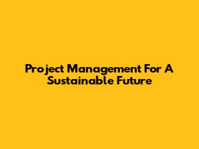 Project Management For A Sustainable Future