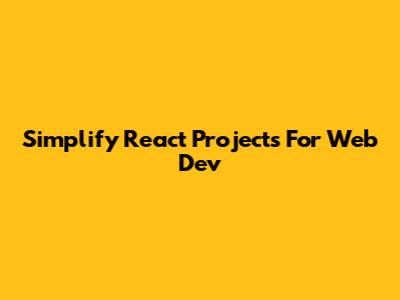 Simplify React Projects For Web Dev