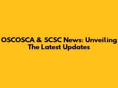 OSCOSCA & SCSC News: Unveiling The Latest Updates