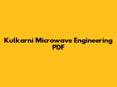 - Google Scholar: A simple Google Scholar search for "Kulkarni Microwave Engineering PDF" might lead you to a downloadable version or a link to a repository where it is available.