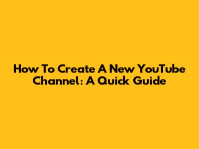How To Create A New YouTube Channel: A Quick Guide