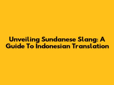 Unveiling Sundanese Slang: A Guide To Indonesian Translation