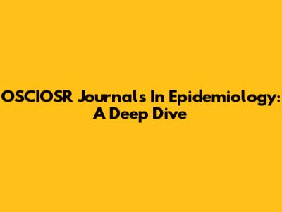 OSCIOSR Journals In Epidemiology: A Deep Dive