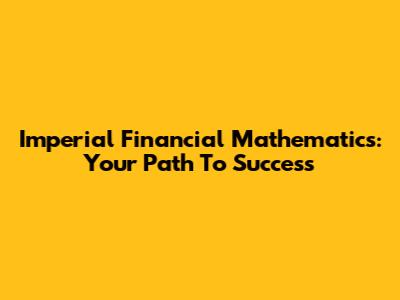 Imperial Financial Mathematics: Your Path To Success