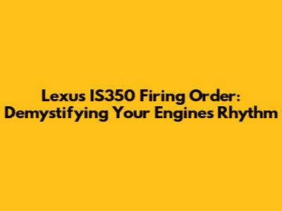 Alright, gearheads! Let's dive into something that might seem a bit technical, but trust me, understanding your Lexus IS350's firing order is super important for keeping your ride running smooth. Think of it like a perfectly choreographed dance for your engine. If the steps are off, well, you're gonna have some issues. We're talking rough idling, misfires, and a general lack of power. No one wants that! So, let's break down the IS350's firing order, why it matters, and how you can use this knowledge to keep your Lexus purring like a kitten (a very powerful kitten, that is).