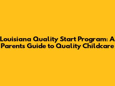 Hey everyone! Choosing the right childcare for your little ones is a HUGE deal, right? It's like, one of the most important decisions you'll make. You want a place where your kids are safe, happy, and learning awesome stuff. That's where the Louisiana Quality Start Program comes in – it's designed to help parents like you find the best possible early care and education programs for their children. So, what's it all about? Let's dive in and explore everything you need to know about the Louisiana Quality Start Program, why it's super important, and how it can help you find the perfect fit for your child. Buckle up, because we're about to embark on a journey through the world of quality childcare!
