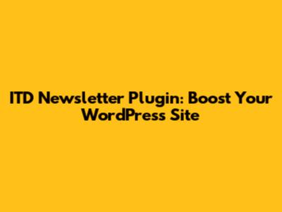 ITD Newsletter Plugin: Boost Your WordPress Site