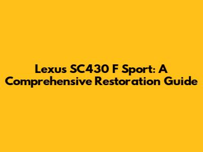 Lexus SC430 F Sport: A Comprehensive Restoration Guide