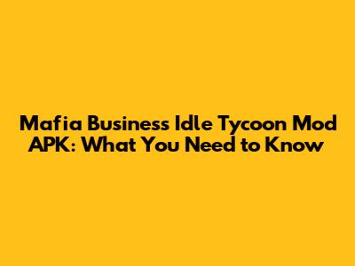 Hey guys! So, you've probably stumbled upon the term "Mafia Business Idle Tycoon Mod APK" and are wondering what all the fuss is about. Well, you've come to the right place! We're diving deep into this popular game, exploring what makes it so addictive, and what the "mod apk" aspect actually means. Think of it as your inside scoop to dominating the virtual underworld.