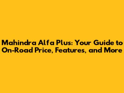 Remember to get a detailed quote for the Mahindra Alfa Plus on-road price from your local dealer, compare it with other options, and make an informed decision. Good luck with your purchase, and happy driving!