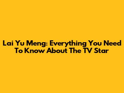 Lai Yu Meng: Everything You Need To Know About The TV Star