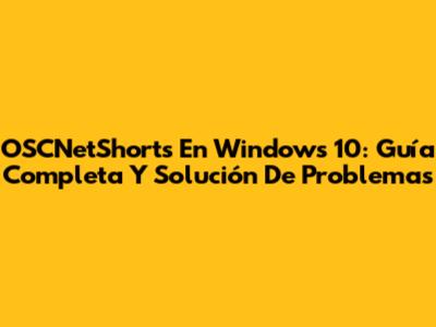 OSCNetShorts En Windows 10: Guía Completa Y Solución De Problemas
