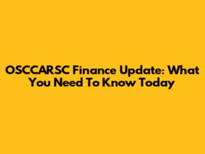 OSCCARSC Finance Update: What You Need To Know Today