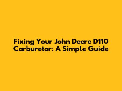 Fixing Your John Deere D110 Carburetor: A Simple Guide