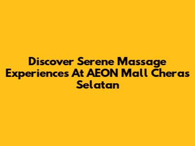 Discover Serene Massage Experiences At AEON Mall Cheras Selatan