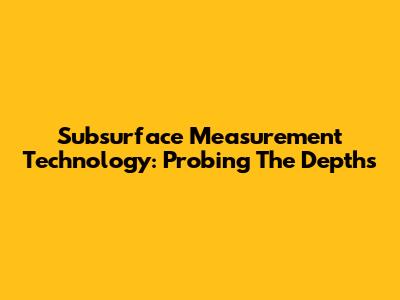 Subsurface Measurement Technology: Probing The Depths