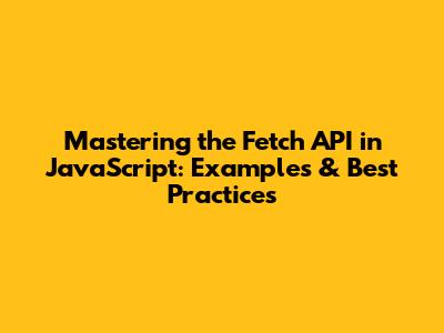 Best Practices for Using the Fetch API
