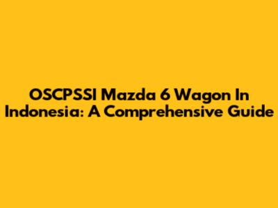OSCPSSI Mazda 6 Wagon In Indonesia: A Comprehensive Guide