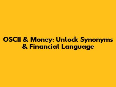 OSCII & Money: Unlock Synonyms & Financial Language