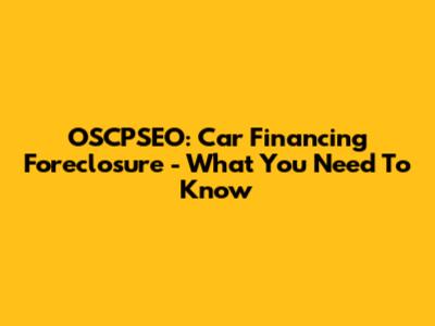 OSCPSEO: Car Financing Foreclosure - What You Need To Know