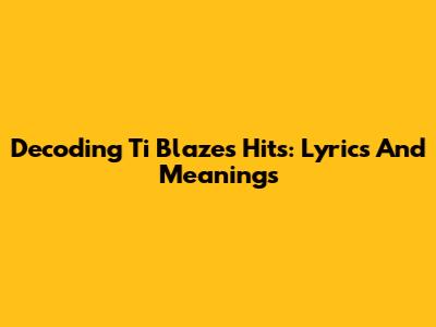 Decoding Ti Blaze's Hits: Lyrics And Meanings