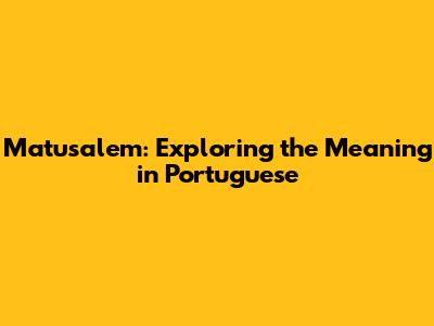 Let's dive into the fascinating world of names and their meanings, specifically focusing on "Matusalem" and its significance in Portuguese. Names carry a lot of weight, often reflecting cultural, religious, and historical contexts. Understanding the meaning of a name can give you a deeper appreciation for its origins and the people who bear it. So, buckle up, and let's explore what "Matusalem" means in the Portuguese language and its broader implications.