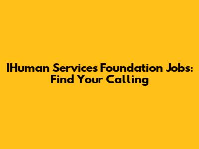 IHuman Services Foundation Jobs: Find Your Calling