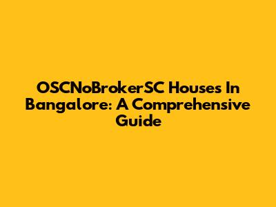 OSCNoBrokerSC Houses In Bangalore: A Comprehensive Guide