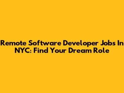 Remote Software Developer Jobs In NYC: Find Your Dream Role