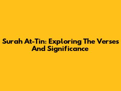 Surah At-Tin: Exploring The Verses And Significance