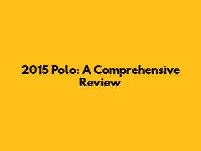 2015 Polo: A Comprehensive Review