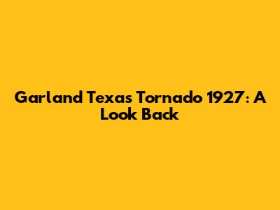 Garland Texas Tornado 1927: A Look Back