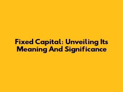 Fixed Capital: Unveiling Its Meaning And Significance