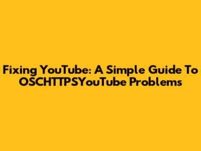 Fixing YouTube: A Simple Guide To OSCHTTPSYouTube Problems