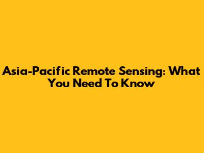 Asia-Pacific Remote Sensing: What You Need To Know
