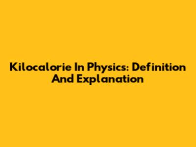 Kilocalorie In Physics: Definition And Explanation
