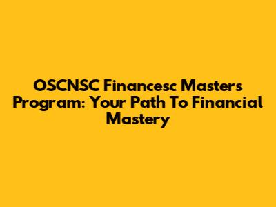 OSCNSC Financesc Masters Program: Your Path To Financial Mastery