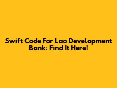Swift Code For Lao Development Bank: Find It Here!