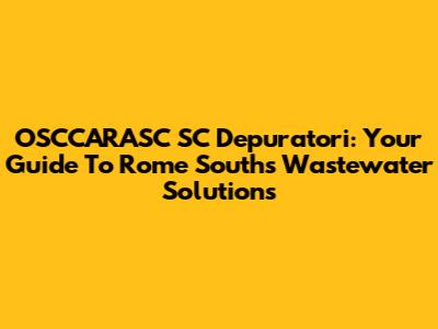 OSCCARASC SC Depuratori: Your Guide To Rome South's Wastewater Solutions